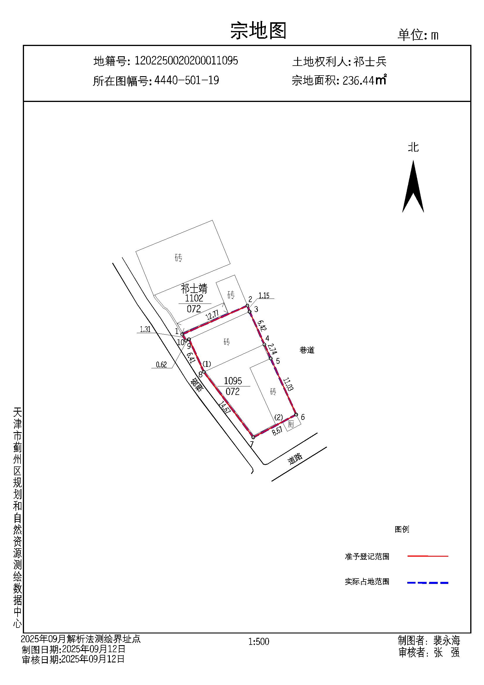 经本人祁士兵申请,罗庄子镇赵家峪村村民委员会进一步调查核实,罗庄子镇人民政府再次确认,村民祁士兵宅基地确权面积为236.44平方米,超标用地为0.00平方米,地上建筑面积确权面积为122.05平方米。拟同意村民罗庄子按照附图情况进行不动产变更登记(具体情况详见附图)。