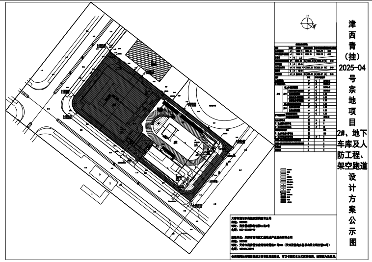 为进一步提高规划设计和管理水平,增加规划审批的科学性、民主性、公开性及透明度,争取社会各界对规划管理工作的理解、支持、监督和指导,加强全社会的城市规划意识,更好地为城市建设、经济发展和社会进步服务,根据有关规定,现将津西青(挂)2025-04号宗地建设项目2#、地下车库及人防工程、架空跑道设计方案总平面图进行公示,公示时间为7个工作日(2026年1月23日至2026年2月2日)。公示期间,如对项目规划方案有意见或建议,可以书面实名方式反馈我局或自公示之日起5个工作日内向我局提出书面听证申请,逾期视为无意见。